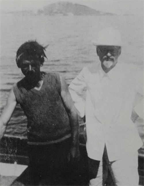 Kharalambos et Trotsky. Au fond l'île de Halki (Coll. Jan van Heijenoort).